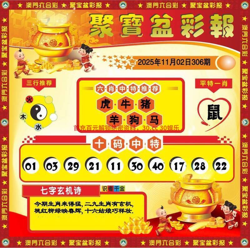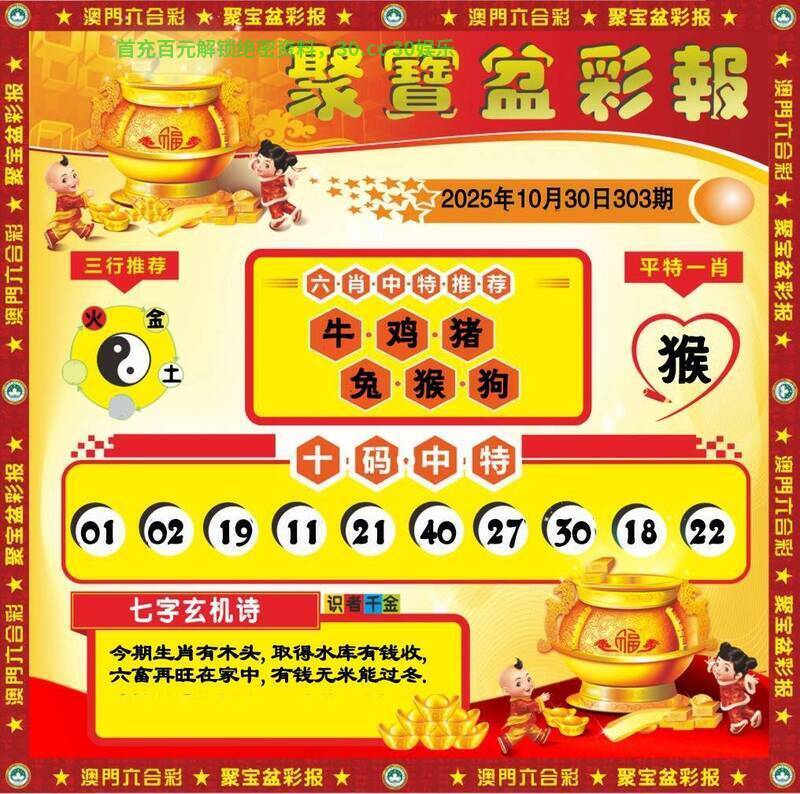 303期:七字玄机诗【今期生肖有木头,取得水库有钱收。六畜再旺在家中,有钱无米能过冬。】 |